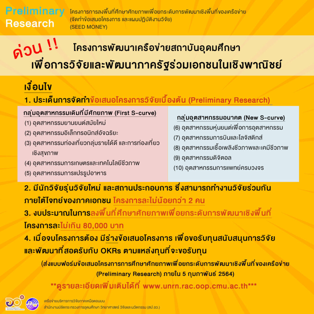 ประกาศ!! เปิดรับกรอบแนวคิดการวิจัยเบื้องต้น (Preliminary Research)