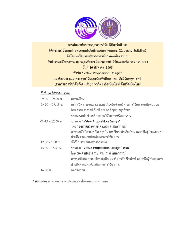 จัดโดย เครือข่ายบริหารการวิจัยภาคเหนือตอนบน