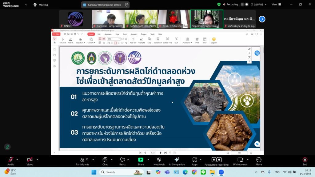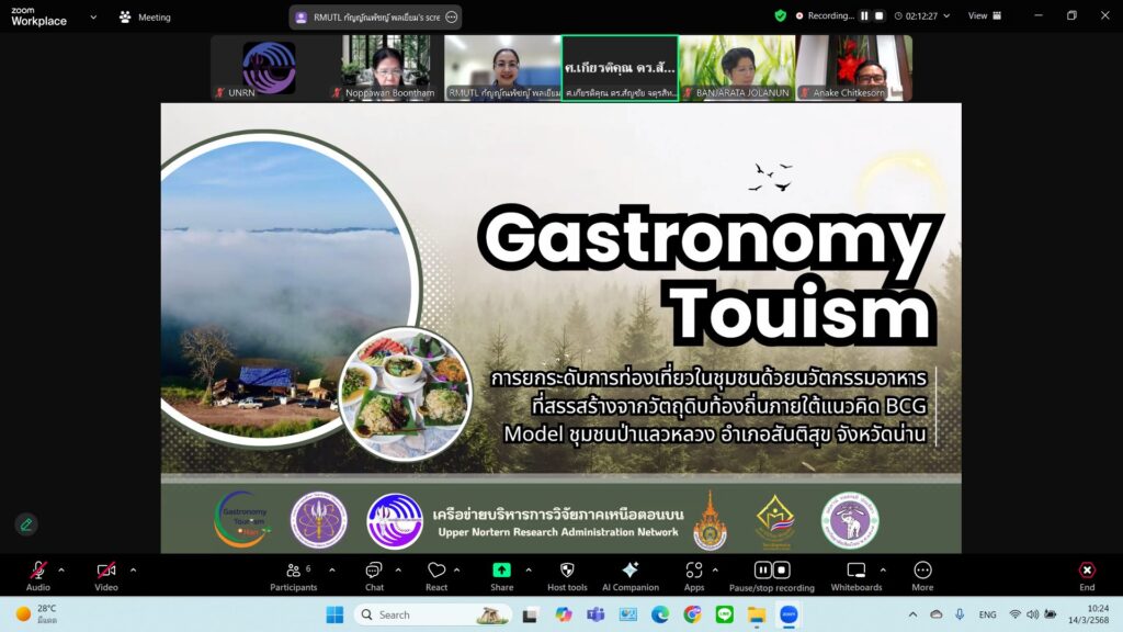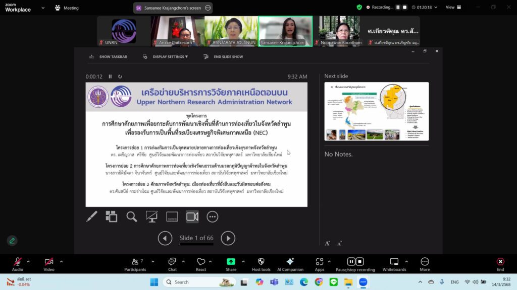 วันที่ 14 มีนาคม 2568 เครือข่ายบริหารการวิจัยภาคเหนือตอนบน ได้จัดเวทีนำเสนอปิดโครงการวิจัยและนวัตกรรมเพื่อถ่ายทอดเทคโนโลยีสู่ชุมชนฐานราก และโครงการวิจัยและพัฒนาภาครัฐร่วมเอกชนในเชิงพาณิชย์ ประจำปีงบประมาณ พ.ศ. 2567 เพื่อให้ผู้ทรงคุณวุฒิได้ให้ข้อเสนอแนะและแลกเปลี่ยนความคิดเห็นกับนักวิจัย
