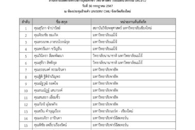 ประกาศรายชื่อผู้เข้าร่วมการอบรม “การประยุกต์ใช้ SROI และ SDG ในการวิเคราะห์ผลงานวิจัยและนวัตกรรม”ประกาศรายชื่อผู้เข้าร่วมการอบรม” 5 สิงหาคม 2024unrnประกาศ